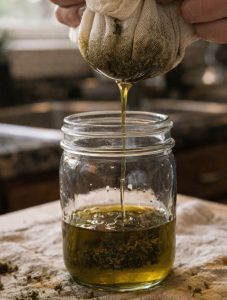 - Strain the liquid through cheesecloth into a glass jar.