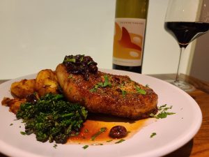 Why they work: The ideal pairing for this dish is a wine that’s acidic enough to cut through its richness, but not so full-bodied as to overpower the pork. The Saltaire Tempranillo has a subtle spiciness that plays nicely with the pomegranate gastrique, but its medium body complements rather than distracts from the flavors of the meal.