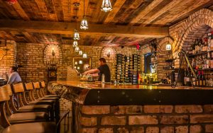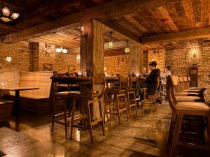If you’re not a Burlington local, you’d never know the space used to be a paint store. It’s been completely redone with weathered lumber and brick that, according to our server, was shipped in from Chicago. The low ceilings, timber beams, and arched alcoves laid into the brick walls and back bar give the space a definite underground vibe, even leaning kind of castle-ey. The space is finished with “hand-picked antique decor,” and lit only by hanging lanterns, wall sconces, and candles, creating a warm, dim atmosphere where laughs and secrets can be shared.
