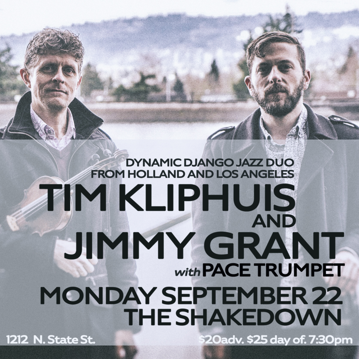 Join us on Monday September 22nd for an acoustic affair to remember in the heart of downtown B’ham with award-winning violin legend Tim Kliphuis (Holland) and rising star on manouche jazz guitar Jimmy Grant (LA).