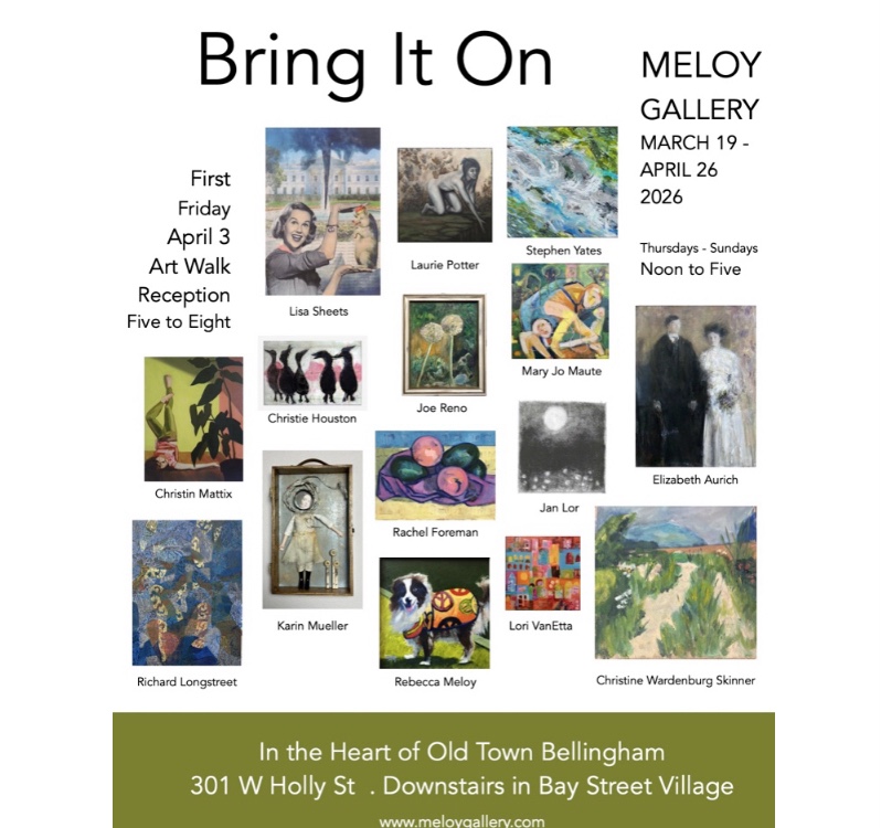 March 19-April, 2026 Bring It On: An invitational show by regional fine artists: Reno, Houston, Aurich, Lor, Maute, Potter, Sheets, Mueller, VanEtta, Mattix, Wardenburg-Skinner, Longstreet, Meloy, Foreman, Yates. Meloy Gallery 301 W Holly Street Suite D6 Downstairs...