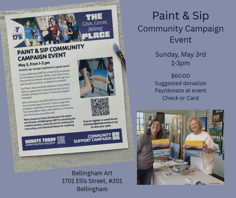 BellinghamArt fundraiser for Whatcom Family YMCA Sunday, May 3 1-3pm