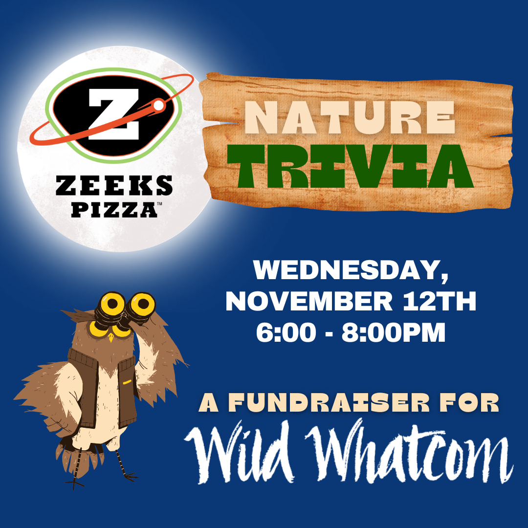 Grab some friends - or make it a family team - and get ready to join us for all ages Nature Trivia at Zeek's Pizza! Wild Whatcom trivia wizards will challenge your nature knowledge with some laughs thrown in. Cost to play is $5 per person, teams can be 2-6 people. Winning teams will get fabulous prizes! Zeek's is donating $1 per pint and 10% of dine-in sales from 5pm...