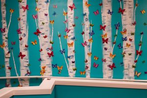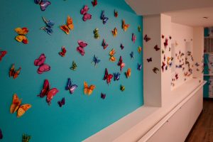 While those numbers are undeniably devastating, the team at the CAC has chosen to measure their ongoing support for these children with a visual representation that’s equally impactful. The hallway outside the sparse interview room is a riot of brightly-colored butterflies—each chosen by a child who’s been interviewed since 2020.