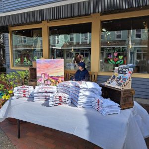 Banaszak also says to look out for custom tulip-themed totes designed by Wild Hemlock in Anacortes, glass poppy garden stakes, and kitchen towels created in collaboration with Mount Vernon’s KLT:works.